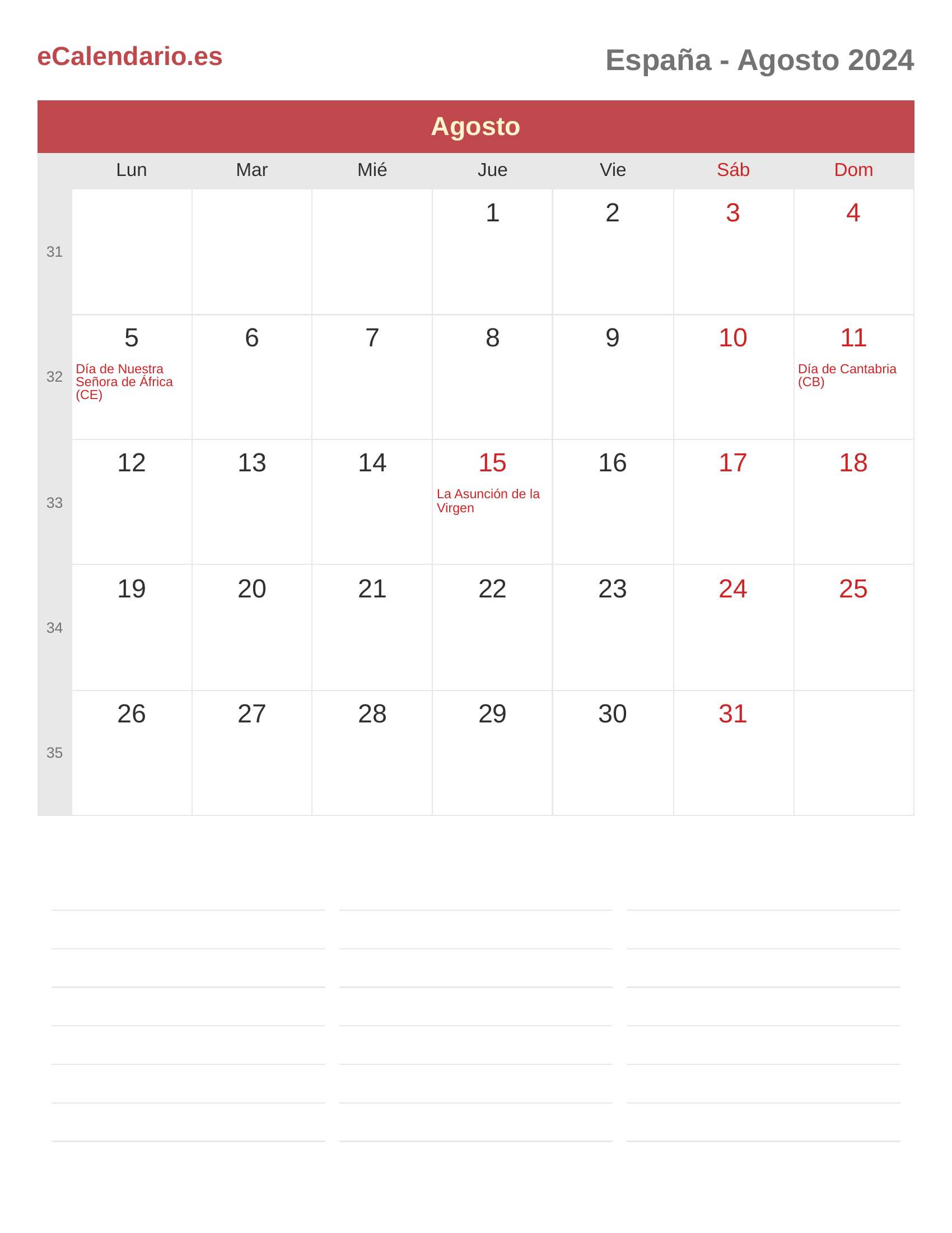 Calendario Agosto 2024 - España