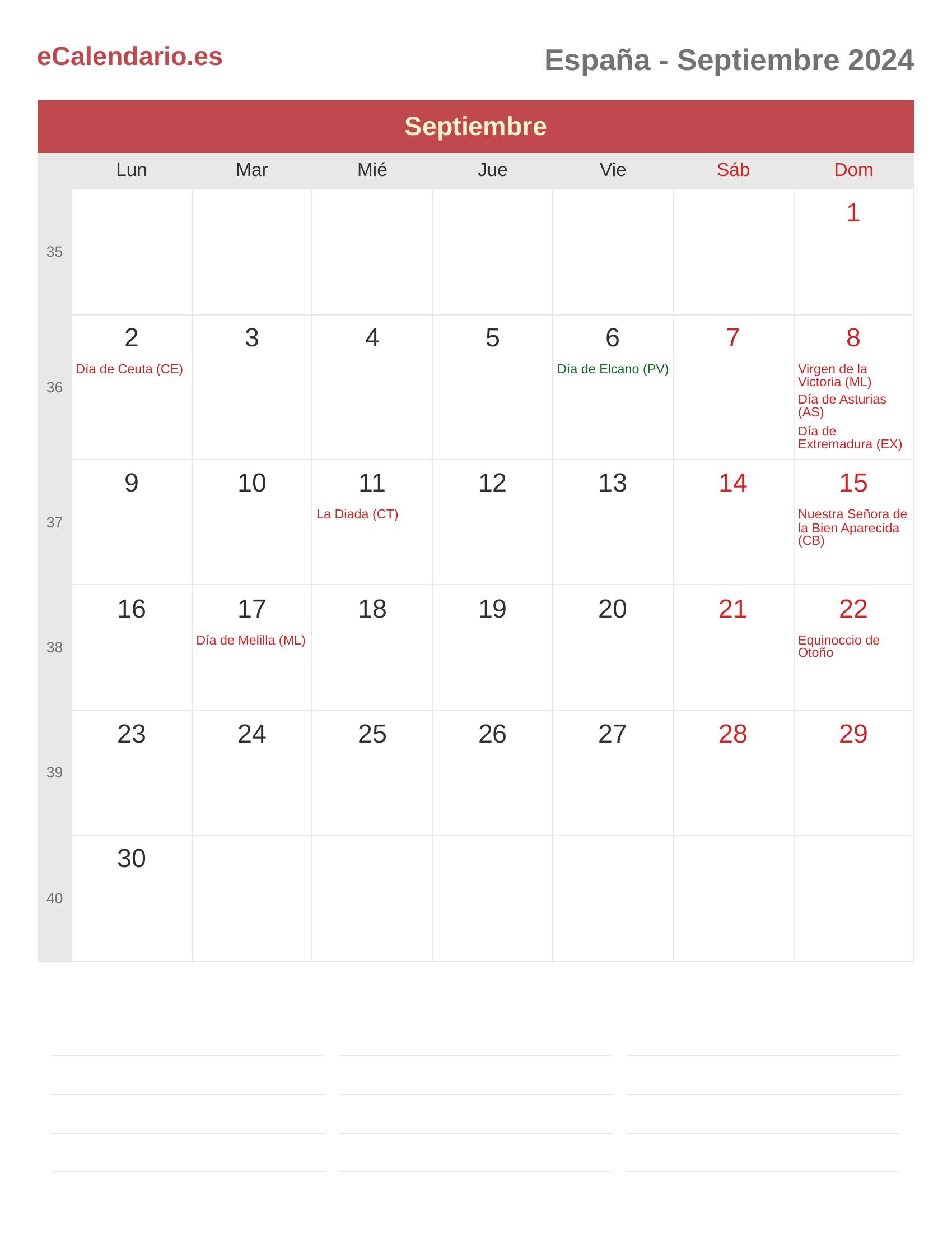 Calendario Septiembre 2024 - España