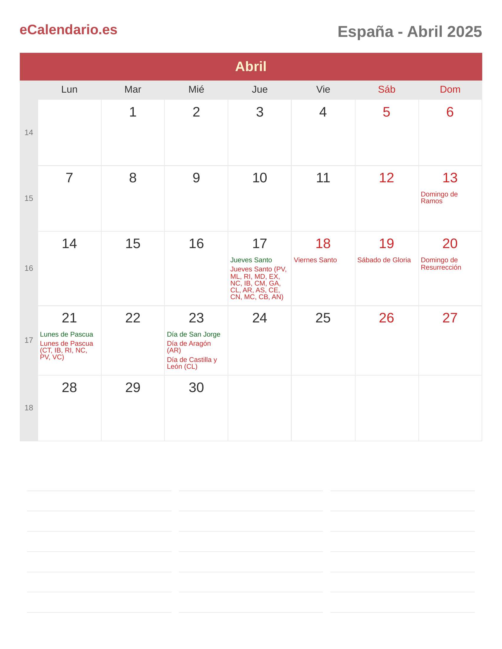 Calendario Abril 2025 - España
