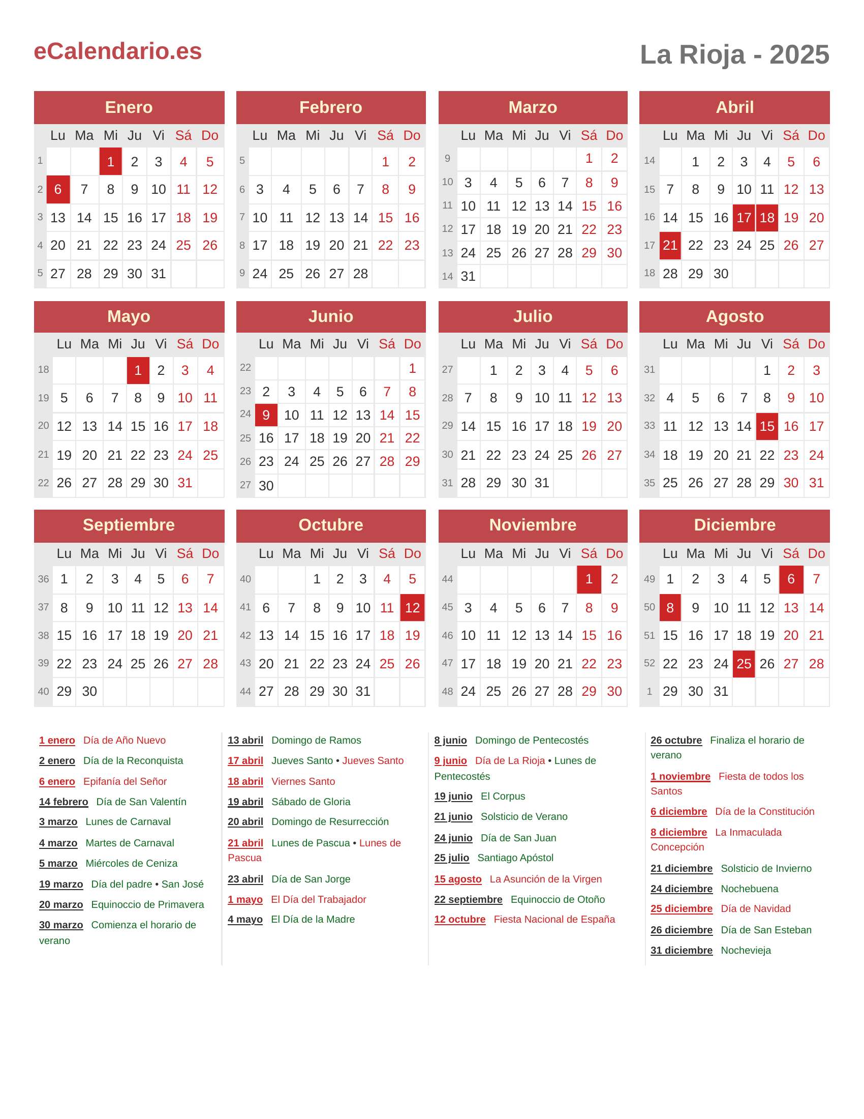 Calendario 2025 - La Rioja