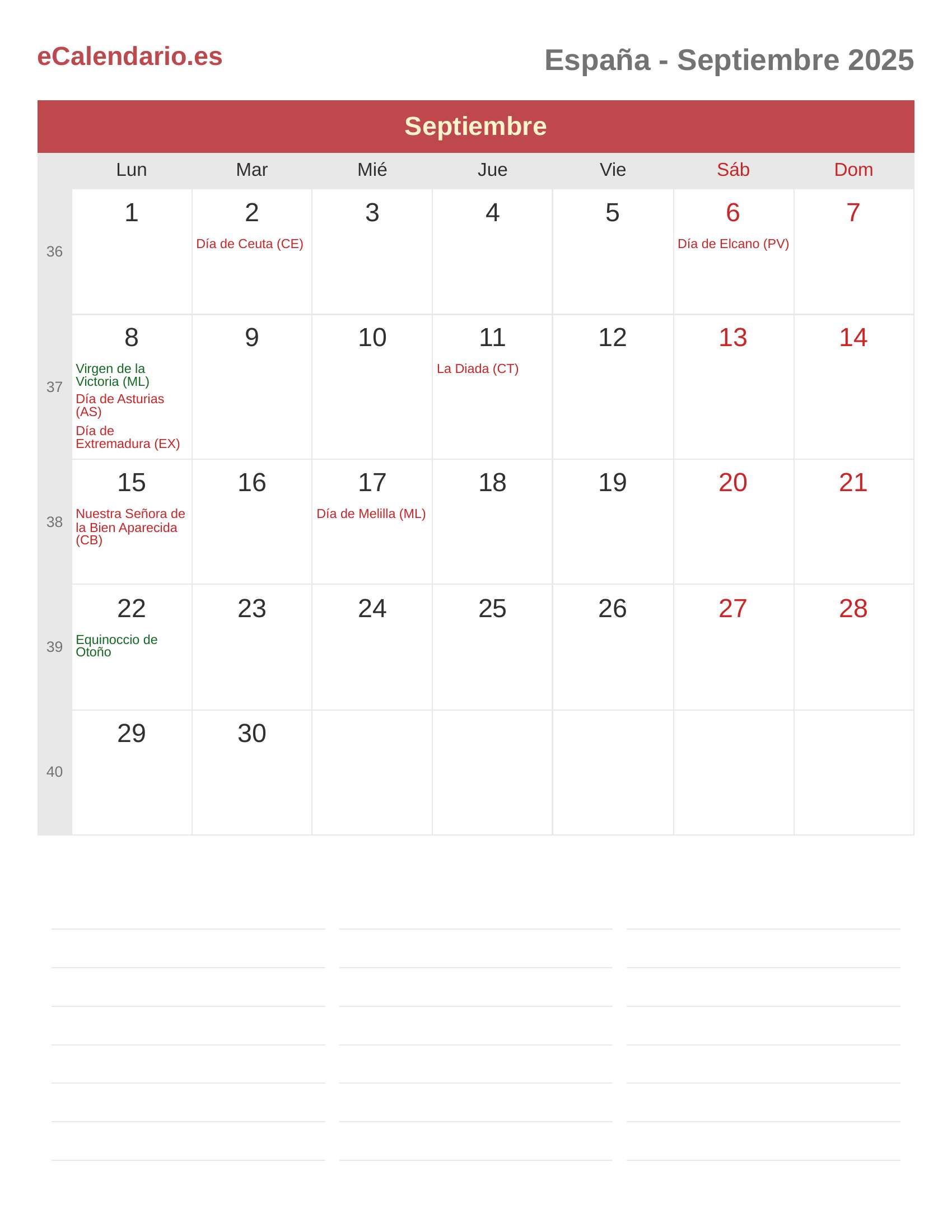 Calendario Septiembre 2025 - España