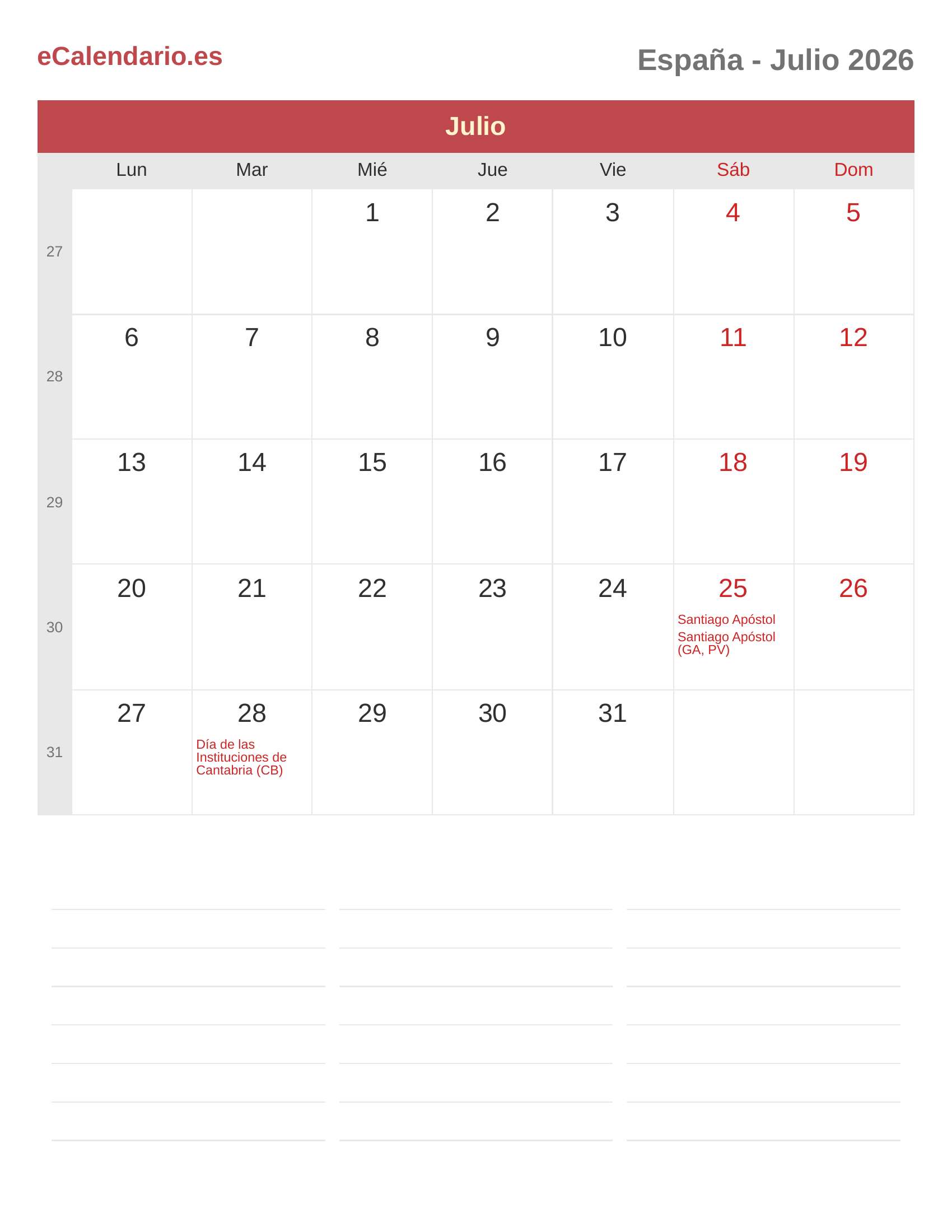 | Lun | Mar | Mié | Jue | Vie | Sáb | Dom | |