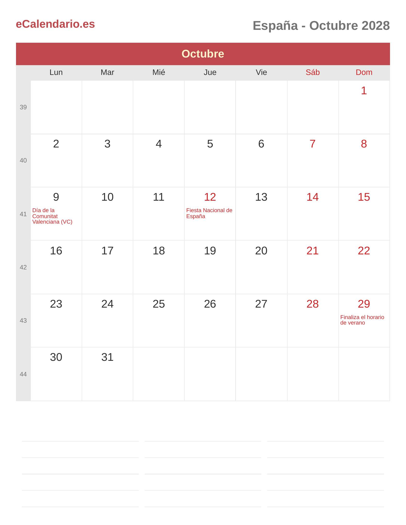Descargar Calendario octubre 2028