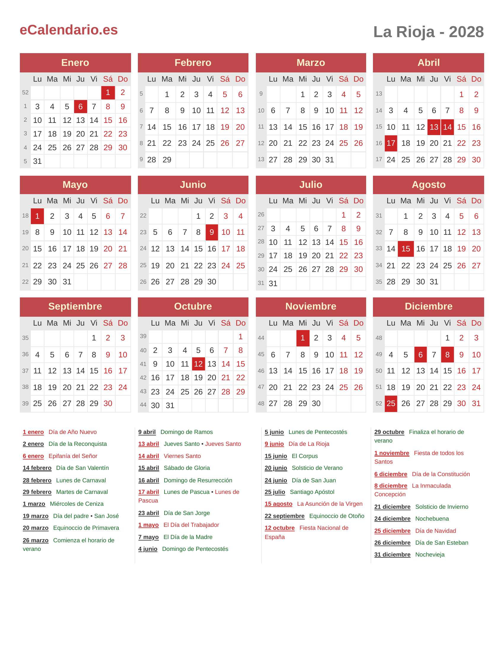 Calendario 2028 - La Rioja