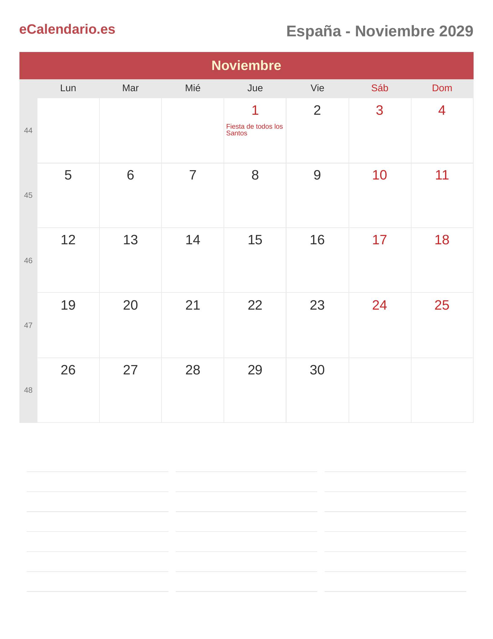 Calendario Noviembre 2029 - España